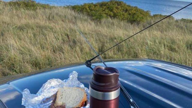 Klaus havde været tidligt oppe og taget turen fra Balle v/ Glatved og hele vejen til Kysing for at fiske.