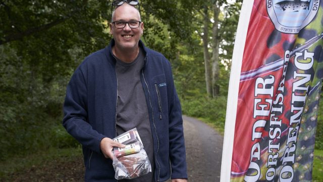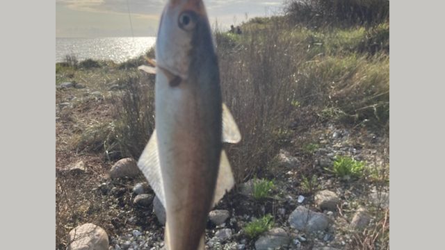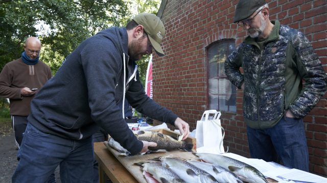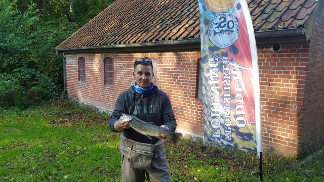 Martin Kammer kiggede ved middags indvejningen forbi med en havørred på 44cm og 0,8kg.