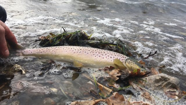 Beslutningen skulle vise sig at være rigtig gavnfuld. Da han efter at have set springene og jagende havørreder landede en havørred på 57cm og 2,15kg.